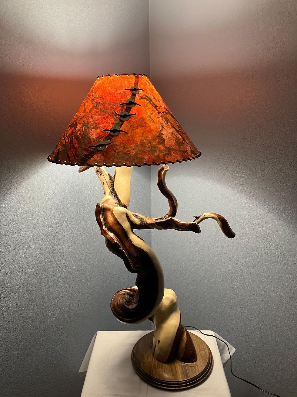 Transform your living space with our hand-crafted Juniper lamps that radiate a unique touch of Wyoming's rustic charm! Choose your favorite shade with your favorite lamp at no additional charge.